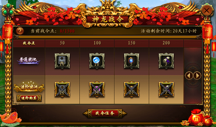 3、玩家可通过购买进阶奖池奖励,获得更多丰厚奖励,进阶奖池售价3288点