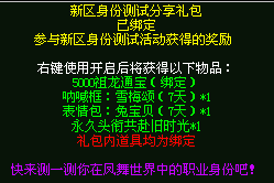 登录新区“无双”,在东冉村NPC“新手教官”处即可免费领取“江湖助战令”1个,每天可以在NPC“新手教官”处兑换1个江湖助战礼包,礼包开启后可随机获得一件实用道具,令牌最多可兑换31次。