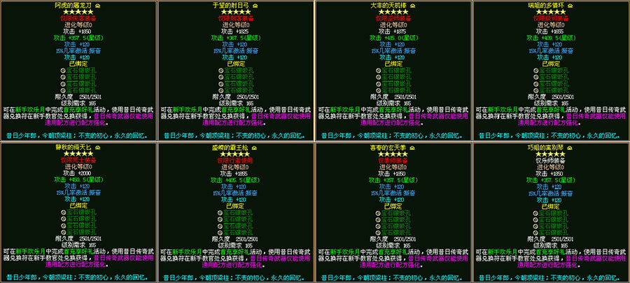 | 120级 | 神器套装包*10,+20配饰强化符*1,20000祖龙通宝 |