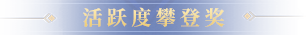 4. 累计活跃度排行获奖范围为活动截止时间时排行榜第1~5名的角色,如果累计活跃度相同,系统将按达成时间先后排序,以截止时页面结算排行为准。