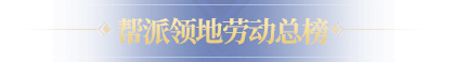 8. 帮派领地劳动总榜排行获奖范围为活动截止时间时排行榜第1~5名的角色,如果累计劳动贡献相同,系统将按达成时间先后排序,以截止时页面结算排行为准。