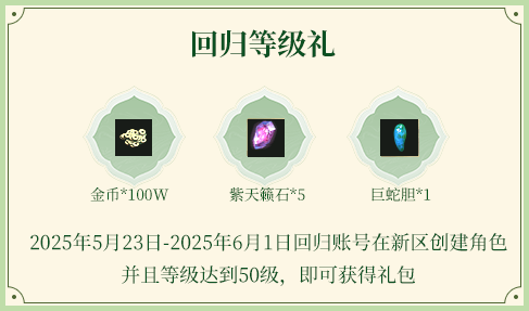 回归登录礼:登录新区【伏羲遗泽】并且创建角色