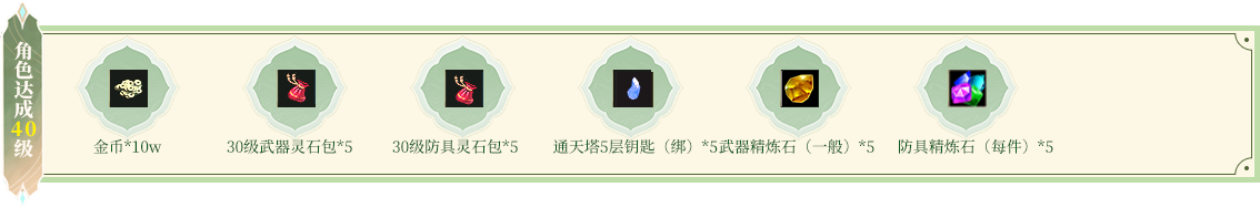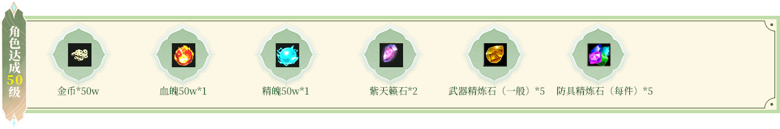 备注:单个角色可领取多个礼包,举例:玩家70级,领取了70级的礼包,则60和50的也可以领取