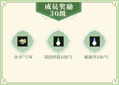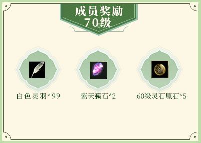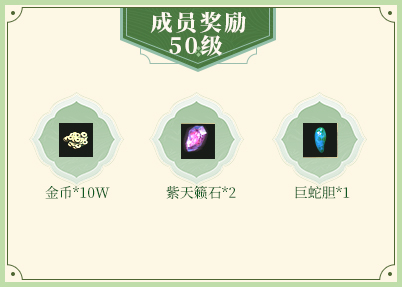 活动规则:新区【伏羲遗泽】开放后,所有成员登录新区且等级达到对应等级,即可领取【成员奖励】