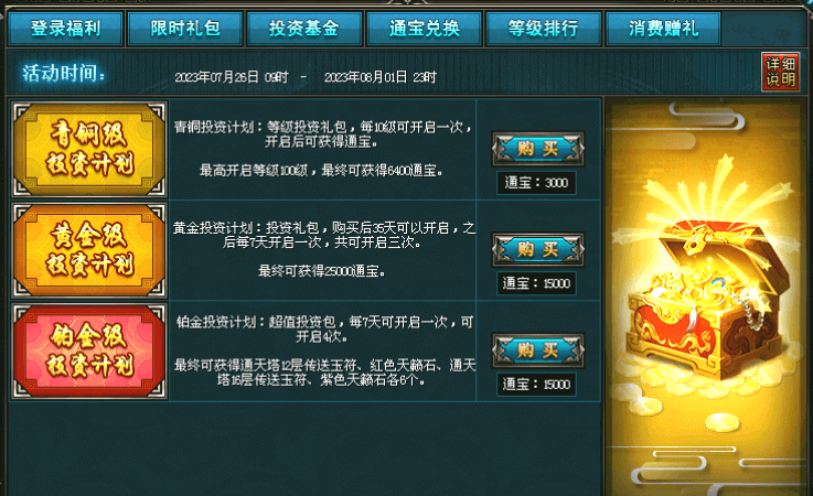 | 第三天 | 双倍经验药1h*2 | 福源丹1h*2 | 血魄微*1 | 精魄微*1 |
