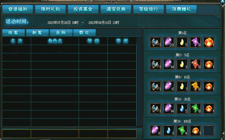 | 第五天 | 双倍经验药1h*3 | 福源丹1h*3 | 血魄微*1 | 精魄微*1 |
