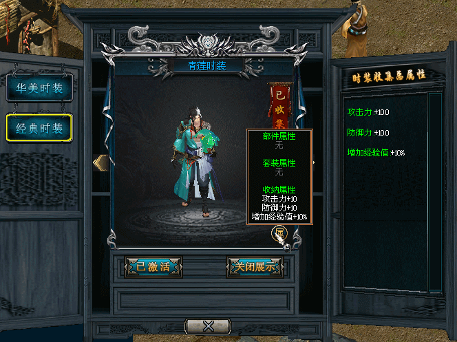 | 青莲时装收纳属性 | 攻击力+10 |